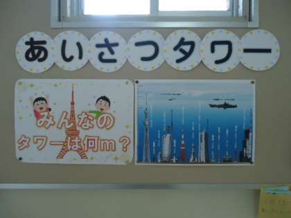 また、1学期に取り組んだ「あいさつツリー」に代わって「あいさつタワー」が登場しました。