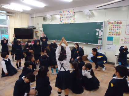 いろいろな学年に入って、授業の支援や、休憩時間の児童看護にあたっています。
