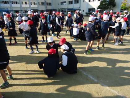 最初は近くの人同士で集まっていましたが、だんだん名前の文字数が増えると、学年が入り混じって楽しくなってきました。