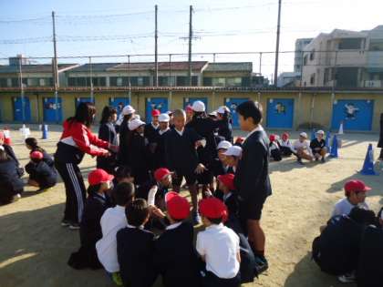 今日もずいぶんと寒い朝でしたが、お日様の当たる運動場は、ポカポカしていました。