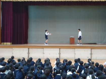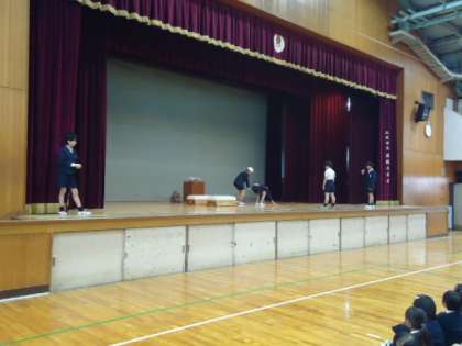 劇仕立ての中に、クイズやパフォーマンスを入れての発表です。