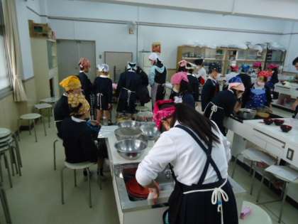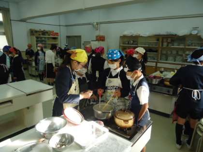 5年生では、今週各クラスが毎日家庭科の実習をしています。
