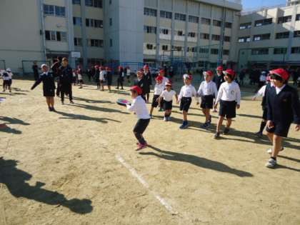 全校遊びの最終回は、1年生と4年生がペアになって遊びました。