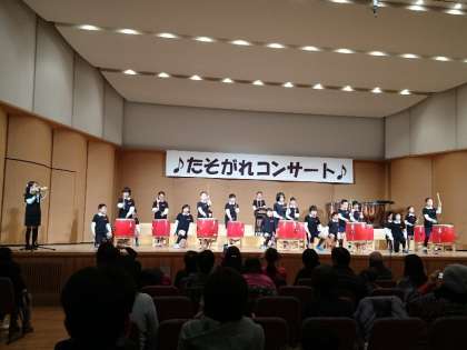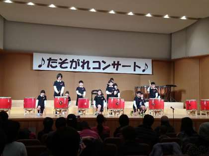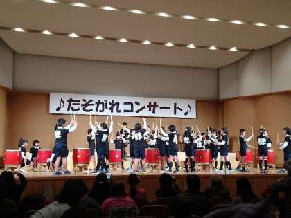 旭陽中学校下四校連絡協議会主催のたそがれコンサートが旭区民センターで行われ、太鼓クラブ「絆」のみんなが出演しました。