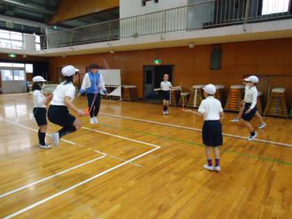 5年生が、大阪リゾート&スポーツ専門学校の先生と学生の皆さんを講師にお招きして、なわとび運動の出前授業をしました。