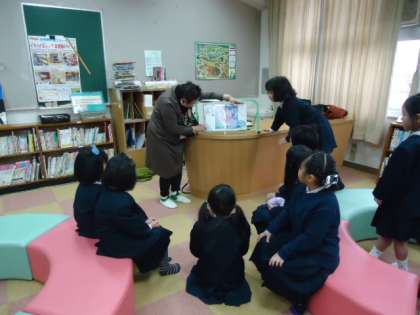今日は朝からの雨で運動場が使えませんが、低学年の児童には、午前中の休み時間に図書ボランティアの皆さんによる絵本の読み書かせがありました。