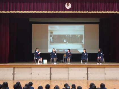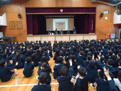 今日の児童集会は、児童会の運営委員会が活動について発表してくれました。
