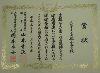 今年も大阪市教育委員会と大阪市学校歯科医会より良い歯の学校表彰をいただきました。