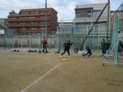 放課後の時間を利用して、6年生の児童と教職員がソフトボールの試合をしました。
