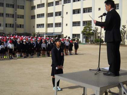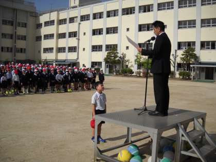 今日の児童朝会では、表彰が2件ありました。「バレーボール」と「日本拳法」です。今年度も、これまでと同様に朝会で紹介をしたいと思います。担任の先生か、教頭先生まで知らせてください。