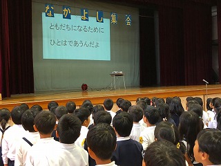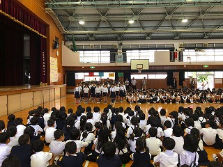 どの学年も、自分たちの意気込みを伝えようと工夫を凝らした発表でした。最後に「ともだちになるため」をみんなで合唱しましたが、とても大きな声で気持ちがこもっていました。