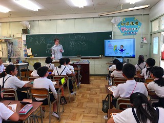 大阪市では、ネイティブによる英語に触れさせる事業としてC−NETによる英語の学習を行っています。本校(旭陽中学校下)のC−NETは、Birgir Konradsson(ビルギル コンラウズソン)先生で、この日は6年生の授業でした。
