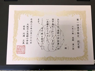 6月27日に、第1回目の「高殿漢字検定」が実施されました。これは、今年から学期に1回、全学年(1学期のみ、1年生は不参加)で、学校独自の漢字検定を一斉に行うもので、漢字検定に向けて学習に取り組み、学習すれば成果が出ることを実感させることが目的です。