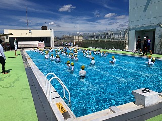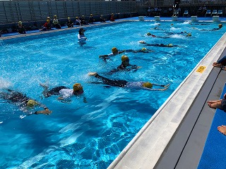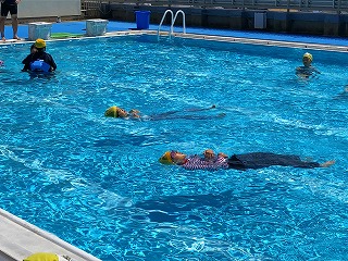 この学習は、着衣で水泳の練習をするのではなく、着衣ではいつものように泳げないことを体感して、水難事故などのときに命を守る方法を知るものです。
