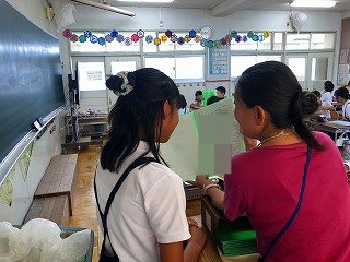 終業式後、各学級では夏休みの過ごし方の注意や、宿題の説明などが行われ、1学期の学習の成果と課題を振り返る「はばたき」(通知票)を担任先生からもらいました。