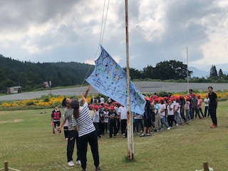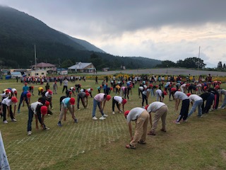 朝の集いでは、今日一日のしっかりと活動することを確認して、みんなで体操をしました。