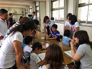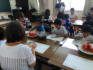 7月30日(月)「にこにこお楽しみ会」が行われました。最初に、カードでゲームをして、そのあと、みんなでフルーチェを作りました。フルーチェと、学校でできたスイカをみんなでいただきました。最後に工作をして、楽しいひと時を過ごしました。