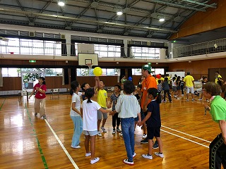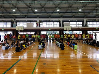 開会式では、各班のリーダーとなる地域・PTAの方々の紹介がありました。そして、オリエンテーションでは簡単なゲームをし、昼食のカレーライスのトッピングをかけてクイズ大会もありました。見事優勝した班には、カレーにトンカツのトッピングが決まりました。