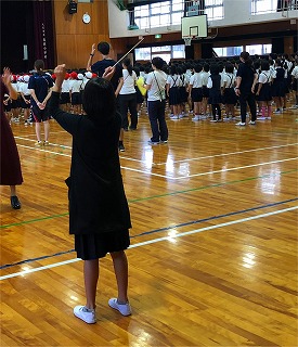 運動会当日に指揮を担当する子も、今はみんなの後ろで懸命に指揮の練習をしていました。