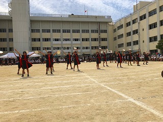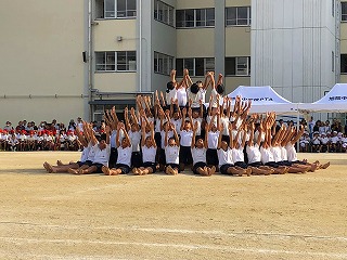 そして、6年生は小学校最後の運動会。グループごとに様々なダンスをユーモアを交えて踊り、その後、全員で組体操です。技がピタッと決まると会場からも大きな拍手がわきおこりました。