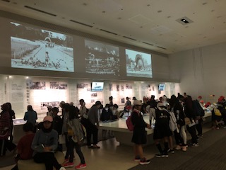 平和記念資料館の見学です。先ほどの語り部の中村さんのお話もあり、展示されている資料の内容がよくわかりました。小学生と外国人の方が多いです。