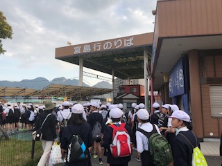 平和記念公園を後にして、バスで宮島口に着きました。今から船で宮島に渡ります。