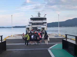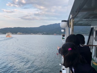 800人乗りのフェリーを90人ほどで貸し切りです。船の中では、みんな興奮気味。