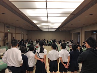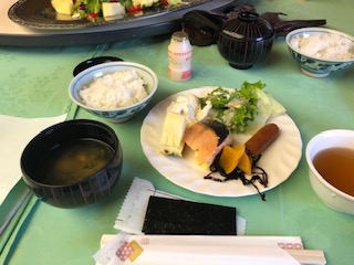 今朝のメニューは、たまご焼き、ウィンナー、焼き魚、野菜サラダ、みそ汁です。たくさん食べる子とそうでない子がはっきりしてきました。