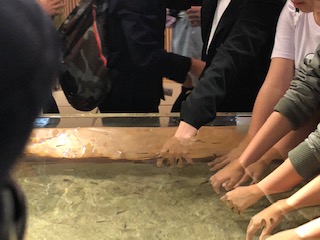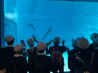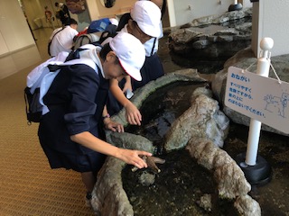 宮島水族館の見学です。いろいろな魚を見たり、ヒトデやナマコを触ったたり、ドクターフィッシュに手をつっつかれたりしました。