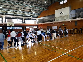 11月5日(月)5時間目、PTA学級委員さんによる「親子ふれあい」が行われました。体育館に集まっていただいた60人を超える保護者のみなさんが、1年生の子どもたちと楽しく遊びました。