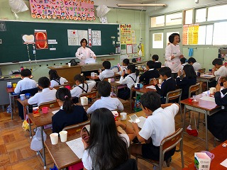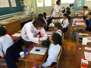この日は、歯科校医の先生にも来ていただき、様子を見ていただきました。「この学年は、比較的虫歯の少ない学年なので、この調子で歯磨きを続けてほしい」とおっしゃっていました。