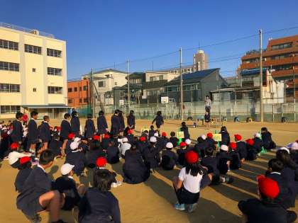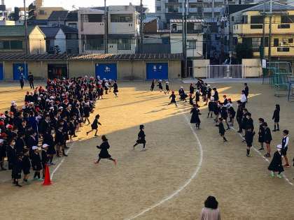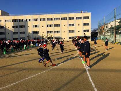 運動好きな子どもを増やすようにと取り組まれた「元気アップ集会」、今回は各子ども会対抗の「ジャンケンリレー」です。