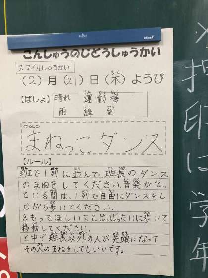 今日の児童集会は「スマイル集会」。縦割り班での活動です。