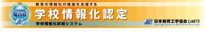 日本教育工学協会(JAET)では、教育の情報化の推進を支援するために、学校情報化診断システムを活用して、「情報化の推進体制」を整え、「教科指導におけるICT活用」「情報教育」「校務の情報化」に積極的に取り組んでいる学校を称え、学校情報化優良校として認定しています。