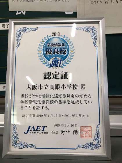 この学校情報化優良校に高殿小学校が認定されました。詳しくは、下記ホームページにてご覧ください。
