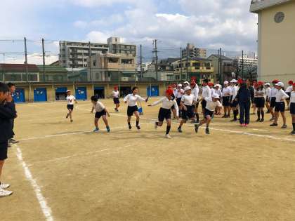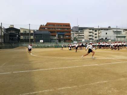 それぞれが走っている友だちの応援をし、中にはトラックの内側を一緒に走り出す子もいました。指導したこととは違うのですが、みんなが一つになって取り組んでいる姿が、とても微笑ましく感じました。