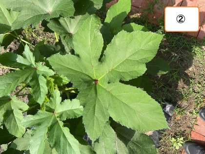 (2)の実はネバネバがあります。栄養もたっぷりで、夏バテ対策に最高です。切り口は星の形をしてかわいいです。葉っぱも5つに分かれていますね。