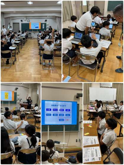 大阪トヨペットグループホールディングス株式会社の方々から、「車作りからSDG’sを考える」をテーマに出前授業をしていただきました。日本の工業生産を学習している5年生。車ができるまでの流れを詳しく学びました。また、「環境対策や社会貢献を無視して生産力を上げたら良いのか?」の問いに、さまざまな資料とともにお話を聞きました。後半は、車会社の社長として会社を成長させるゲームを、タブレットを使って楽しみました。子どもたちの視野が広がる出前授業でした。
