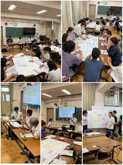 大阪市総合教育センタースクアドバイザーの清岡先生と、南住吉小学の畠中校長先生にお越しいただき、ご指導いただきました。討議会では今日の成果と課題、こんな進め方はどうか?という意見など、みんなでたくさん考えました。