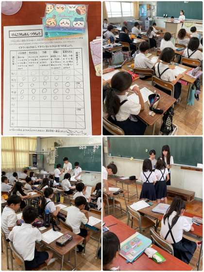 今日は保健委員会による「けんこうちょきん」の日です。毎月最初の木曜日に全校で取り組み、健康への意識を高めています。