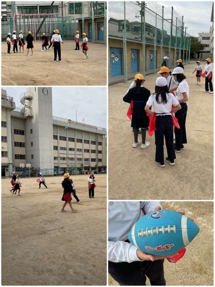 5年生は、タッチフットボールの学習をしています。今度、小学校教育研究会体育部主催のタッチフットボール大会に、参加を希望する児童で行って来ようと考えています。今日は、その朝練をしました。