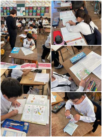 国語は、漢字を学習した後、動物を調べて、ひみつやわかったことをまとめていました。漢字は年間で160字習います。