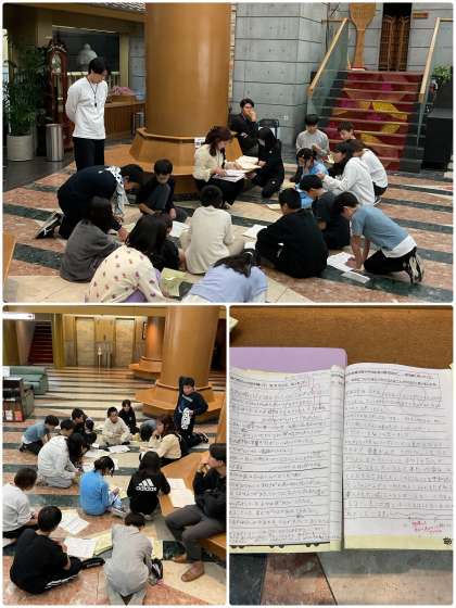 21:10。一日目の活動を終え、室長会議をしました。今日の反省と明日の活動の確認をしました。この後部屋に戻って、室長は班のみんなに周知します。