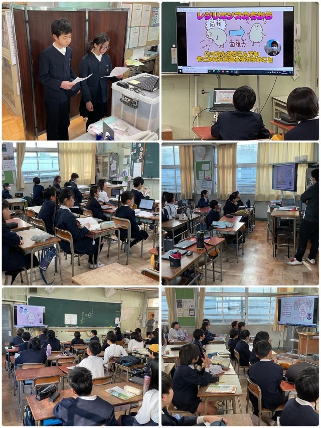 規則正しい生活を送ったり、いろいろな考え方をしてみたり、気持ちを伝え合ったりすることが、レジリエンスを高めるよ!と、大変わかりやすい委員会発表をすることができました。