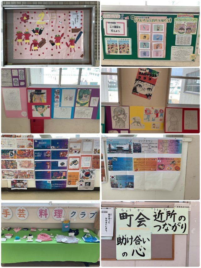 教室内にも子どもたちの作品が掲示してあります。お楽しみに!また、正門、保健室前、2階ろうかにも、さまざまな展示、掲示がありますので、ぜひご覧ください。