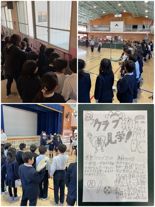 6時間目、3年生はクラブ活動の様子を見学しました。配付された「クラブ紹介冊子」をよく見て、ワクワクして今日の日を迎えました!今年は、「ビデオ紹介」「舞台発表」「見学」と、3年生がクラブの様子がよくわかる形にしました。おかげで、4、5、6年生が仲よく楽しそうに活動している姿がよくわかりました。