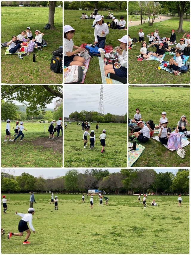 広い公園をオリエンテーリング。「班ごとにポーズを考え、はいチーズ」というチェックポイントでは、それぞれかわいポーズやかっこいいフォーメーションを考えることができました。たくさん歩いた後は、待っていました、お弁当♪「いただきまーす!」の声は、どれだけ声を出すのってくらい元気な声でした。お弁当のご準備、ありがとうございました。