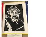5年生教室を見ると、おもしろい版画が掲示してありました。有名人の写真を元に原画...