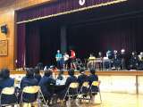 2月26日に、卒業を間近に控えた6年生の茶話会がありました。講堂の舞台を使って...