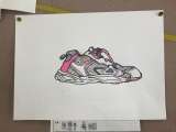 5年生の教室には、靴の絵が掲示されていました。細かいところまで見たとおり描いて...